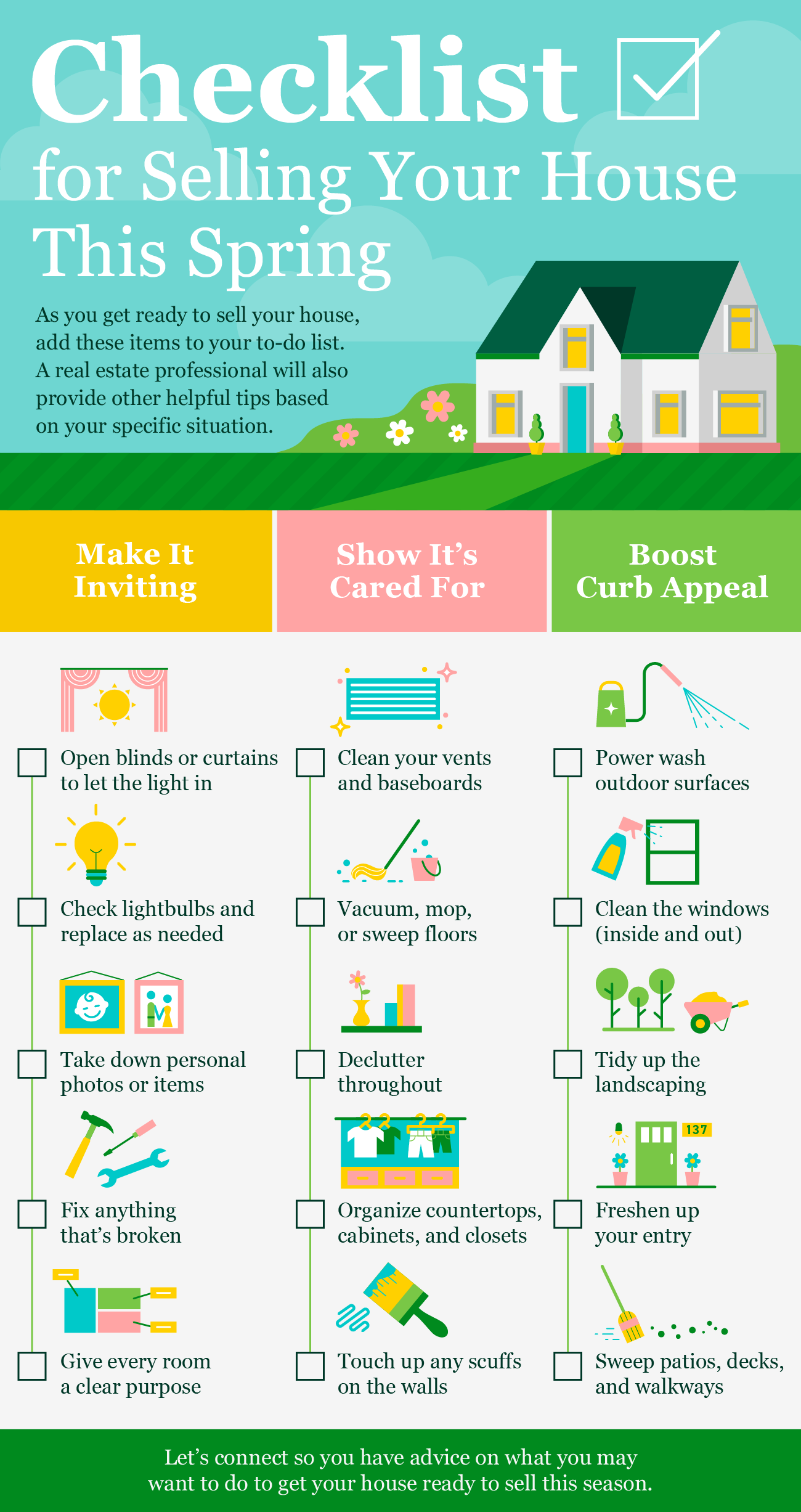 - Let’s connect so you have advice on what you may want to do to get your house ready to sell this season.