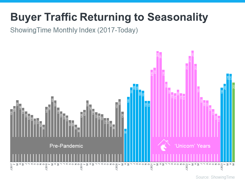 It shows there’s seasonality in real estate. If you look at the last normal years in the market (shown in gray), there was a consistent pattern as buyer activity peaked in the first half of each year (during the peak homebuying season in the spring) and slowed as each year came to a close.