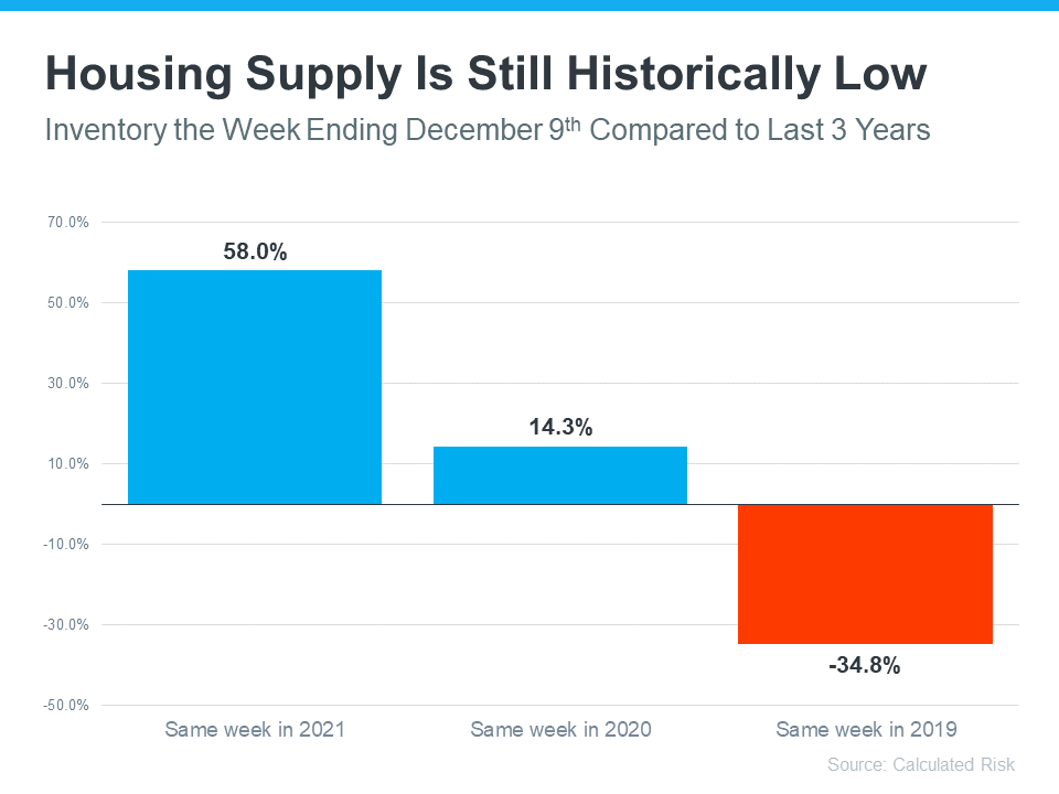 An article from Calculated Risk helps put the inventory gains the market has seen in 2022 into perspective by comparing it to recent years (see graph below). It shows supply has surpassed 2021 levels by 58%. But the further back you look, the more you’ll understand the bigger picture. And if you go all the way back to 2019, the last normal year in real estate, we’re roughly 35% below the housing supply we had at that time.